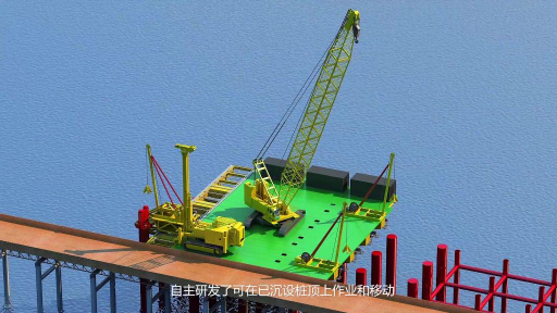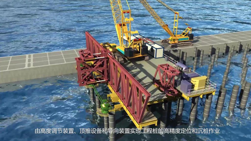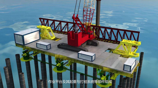 海上桩顶移动打桩平台的核心价值,在于破解了涌浪条件下传统施工装备 “无法作业” 的难题 —— 通过 “在已沉设桩顶上作业移动” 的创新设计,将水上施工转化为类陆上施工模式。其技术架构极为精密:桩顶顶推装置搭配高度调节与导向部件,实现工程桩毫米级定位沉桩;集中控制系统如同 “智慧中枢”,精准调控机构空间运动与支撑装置交替承载,驱动平台以无水平力方式 “步履前移”,稳稳抵达下一排桩位。这些藏在钢铁架构中的技术逻辑,若仅靠文字或静态图,即便专业客户也需耗费大量时间解读,而武汉大田影视的三维动画,却能让复杂技术 “一目了然”。